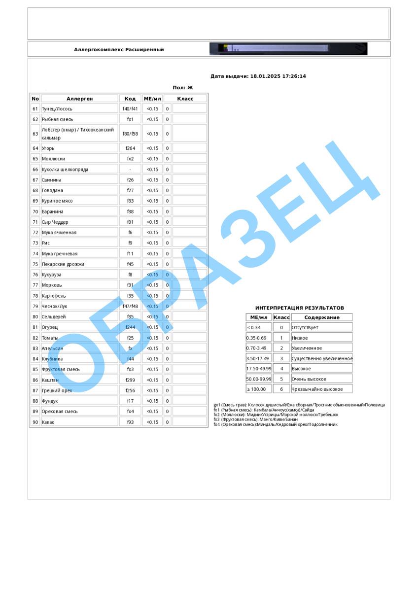 Аллергокомплекс расширенный PROTIA (Корея), IgE, 91 аллерген, количественно