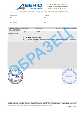 Разъяснение результатов анализов предоставляет важные сведения для доктора и не служит основанием для установления диагноза. Данные, полученные в ходе анализов, не должны применяться пациентами для самостоятельной диагностики или лечения. Окончательный диагноз определяется медицинским специалистом на основе комплексного анализа результатов данного исследования, а также истории болезни и данных из других диагностических процедур.