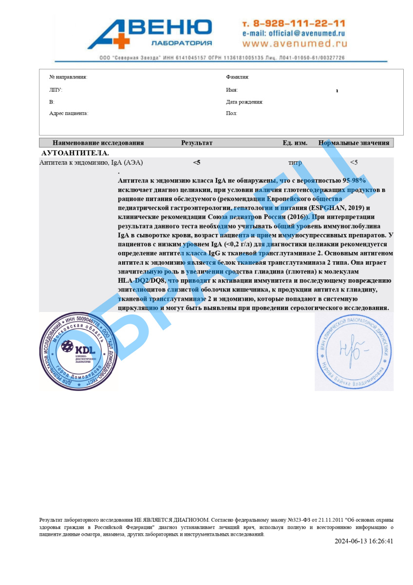 Глютеновый анализ на энтеропатию (целиакию) – это тестна аутоиммунное заболевание, возникающее у лиц предрасположенных в ответ на поступление с пищей глютена. Глютен присутствует во многих продуктах питания, богатых злаковыми :
