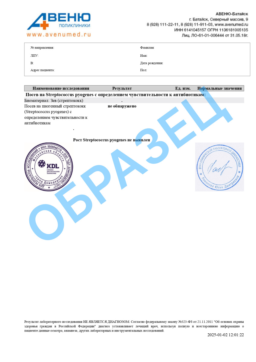 Посев на пиогенный стрептококк (Streptococcus pyogenes) с определением чувствительности к антибиотикам