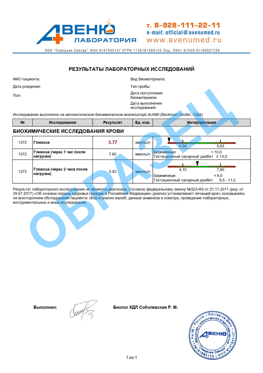 ВАЖНО!Решение о допуске к проведению глюкозотолерантного теста принимается на основании лабораторного анализа на глюкозу, срок давности которого не превышает 7 дней (т.е. этот анализ сдаётся заблаговременно).