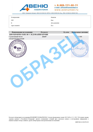 С-реактивный белок (ультрачувствительный), количественно