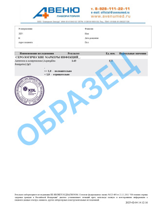 A26.06.006 Определение антител к грибам рода аспергиллы (Aspergillus spp.) в крови