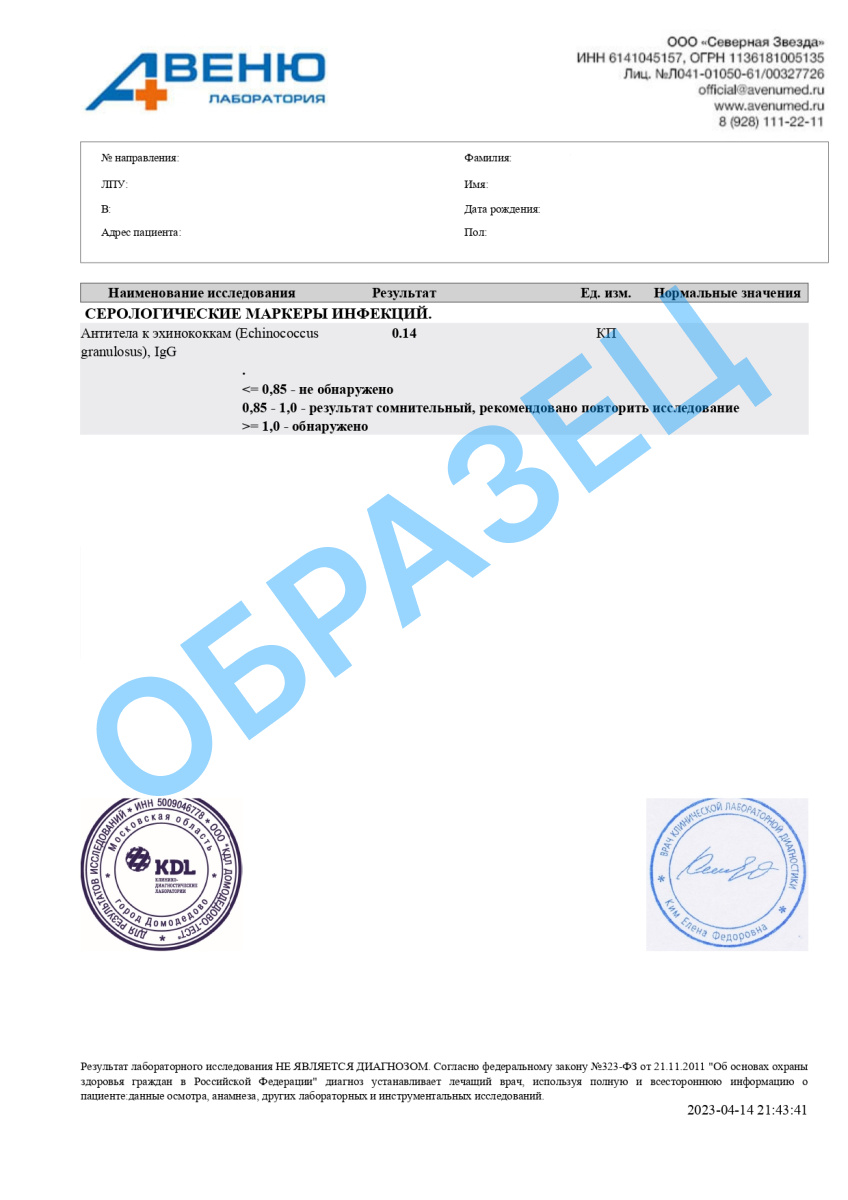 A26.06.024 Определение антител класса G (IgG) к эхинококку однокамерному в крови
