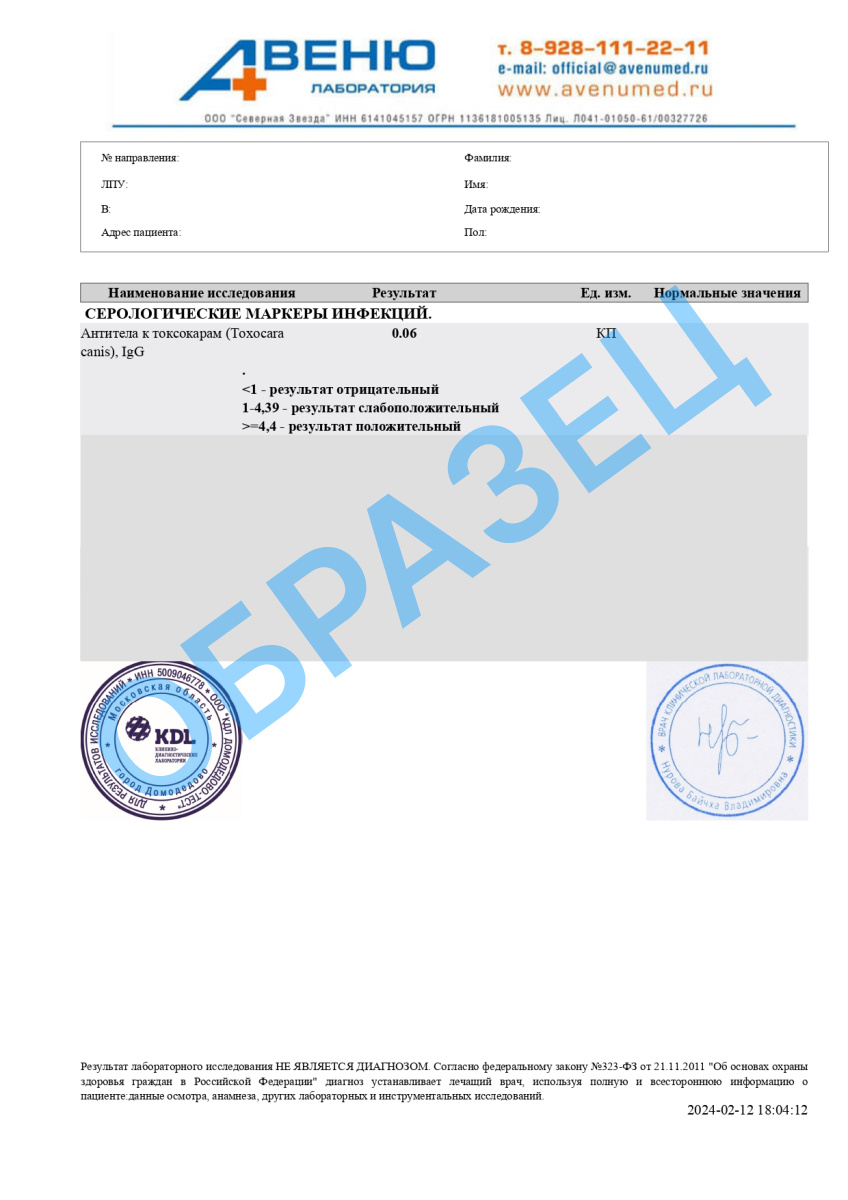 Если вам нужно сдать кровь на анализ для определения уровня антител IgG к токсокарам (Toxocara canis), обратитесь в поликлиники АВЕНЮ в Батайске — пройдите исследование по приятной цене и без очередей.