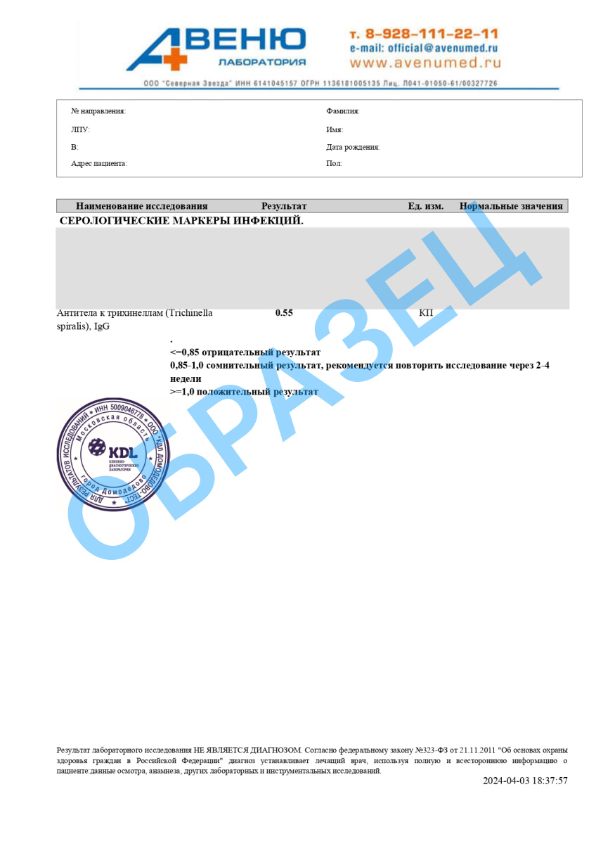 A26.06.079 Определение антител к трихинеллам (Trichinella spp.) в крови