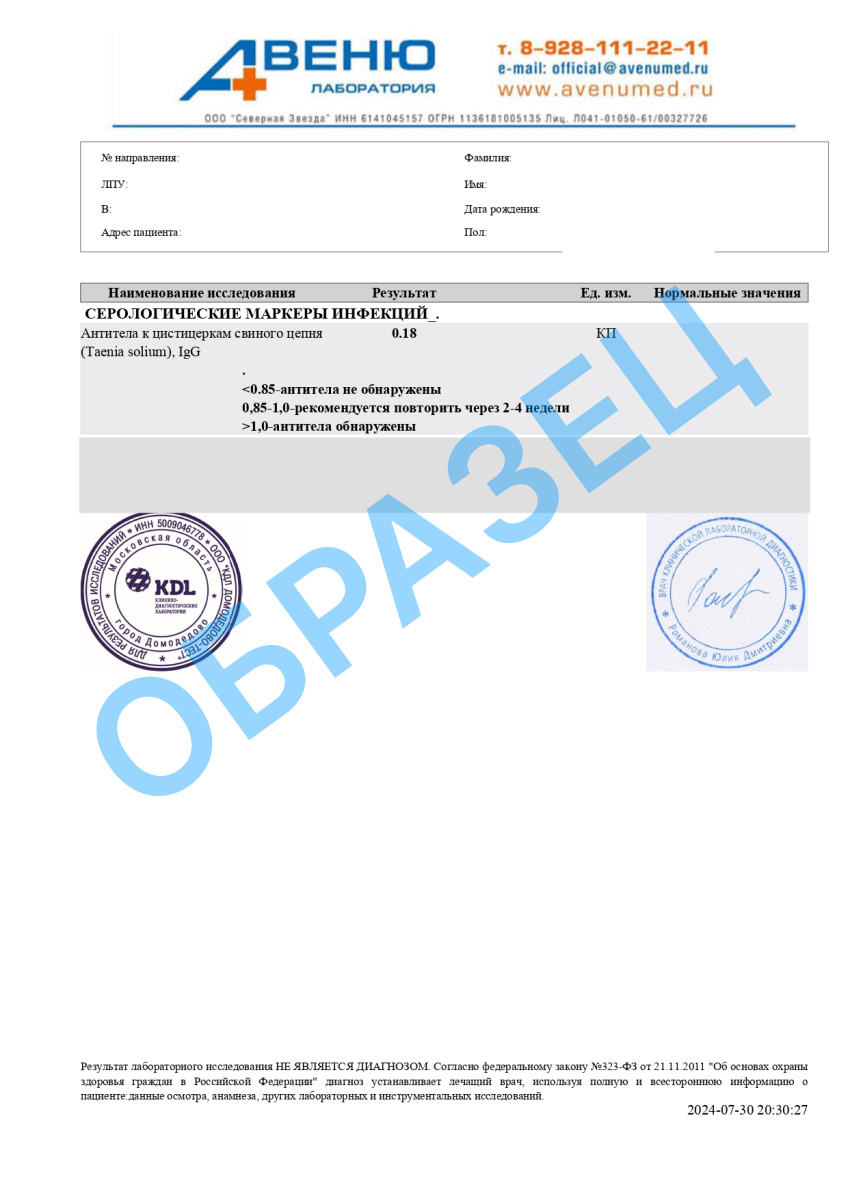 A26.06.122 Определение антител к тениидам (Taenia solium, Taeniarhynchus saginatus)