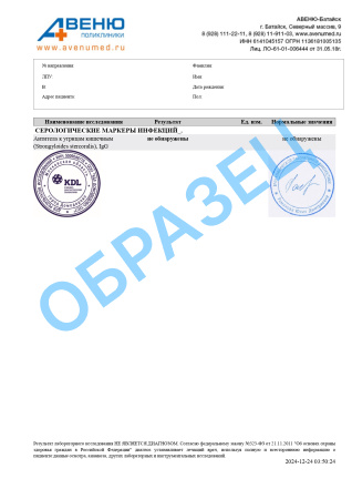 A26.06.123 Определение антител к возбудителям стронгиллоидоза (Strongyloides stercoralis)