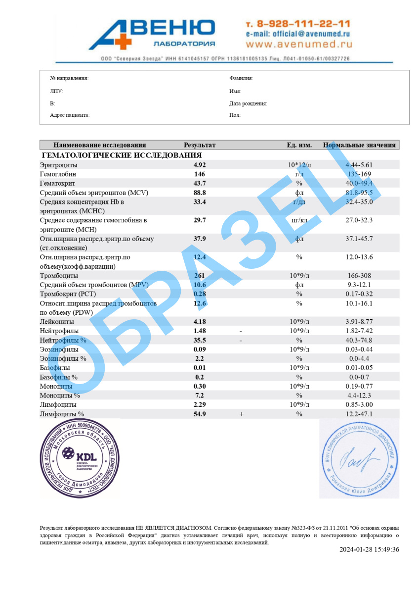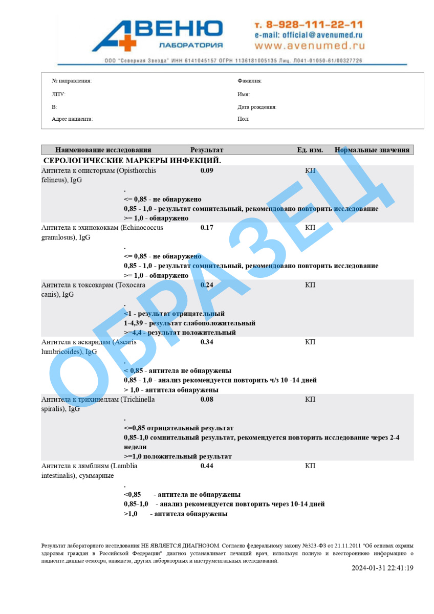 Разъяснение результатов анализов предоставляет важные сведения для доктора и не служит основанием для установления диагноза. Данные, полученные в ходе анализов, не должны применяться пациентами для самостоятельной диагностики или лечения. Окончательный диагноз определяется медицинским специалистом на основе комплексного анализа результатов данного исследования, а также истории болезни и данных из других диагностических процедур.