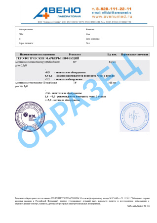A26.06.033 Определение антител к хеликобактер пилори (Helicobacter pylori) в крови
