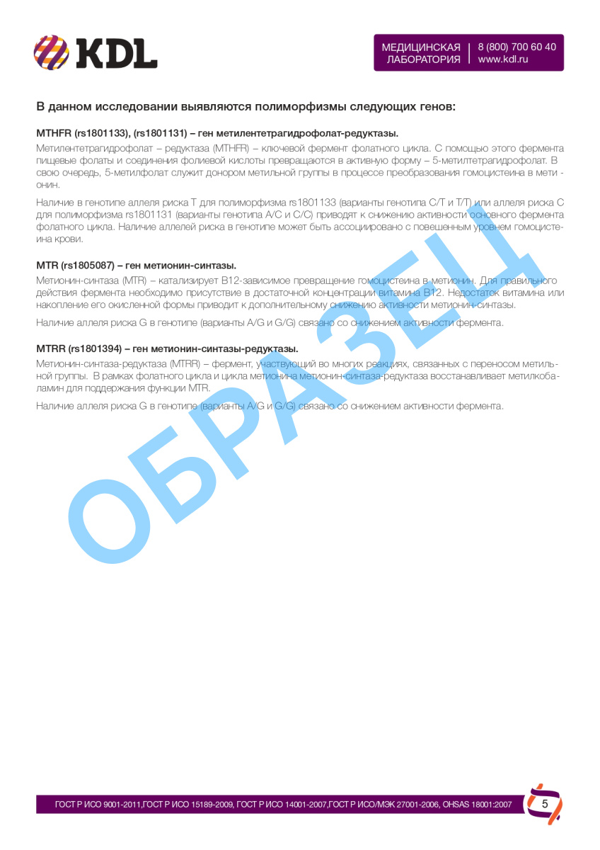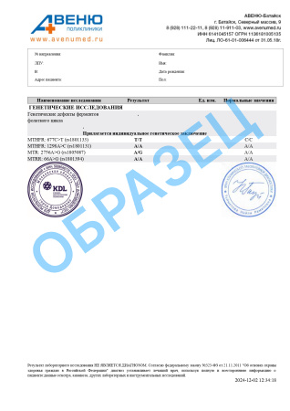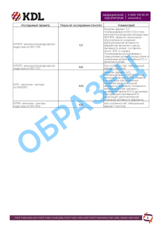 A27.05.003 Определение полиморфизма C677T метилентетрагидрофолат-редуктазы