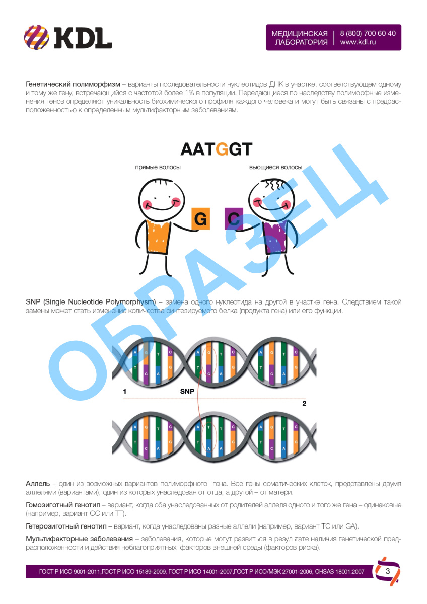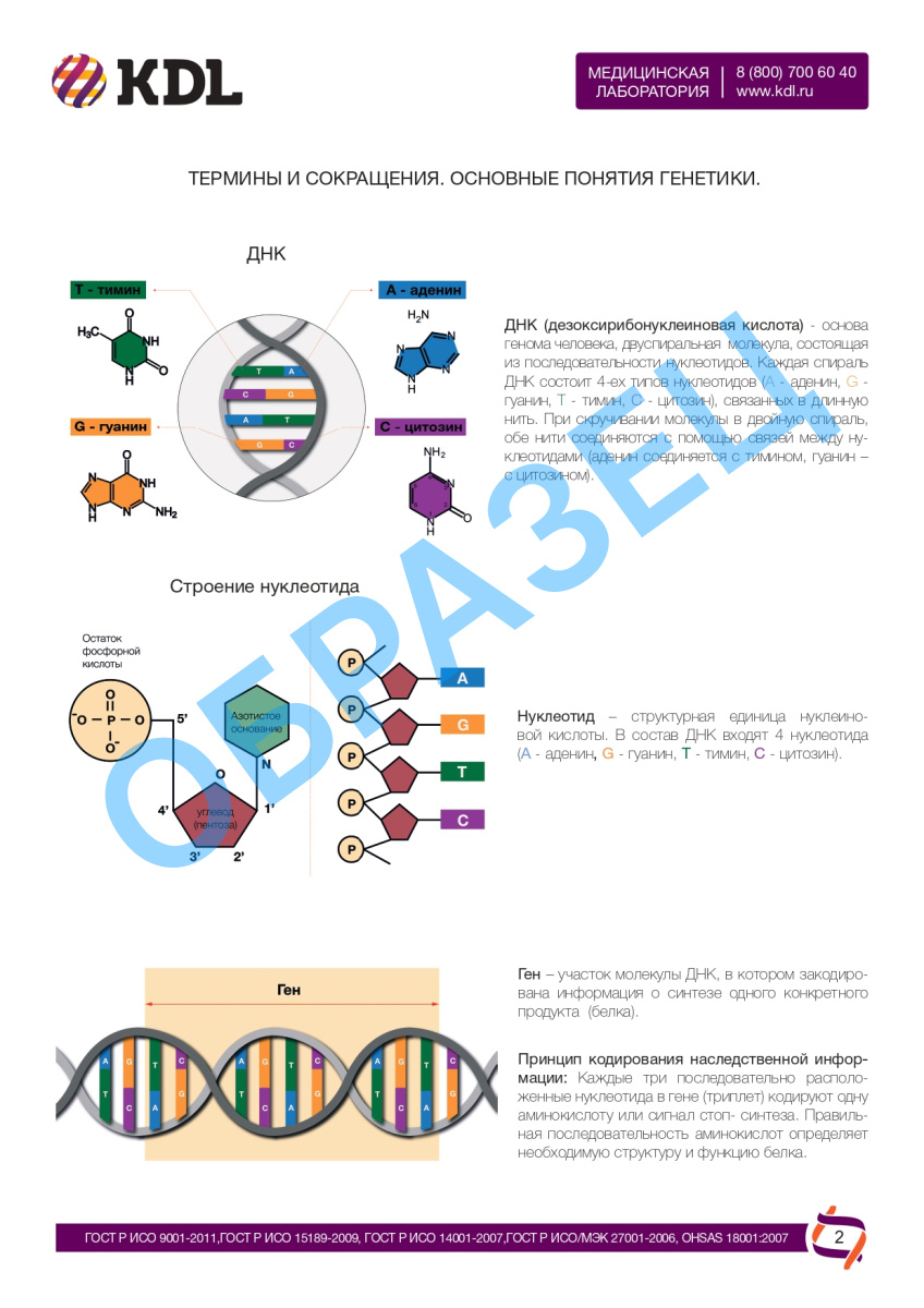 Результаты исследования выдаются в виде Генетической карты здоровья