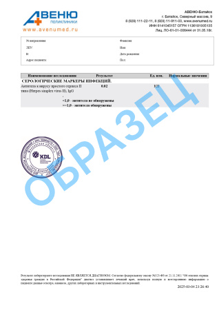 A26.06.045.002 Определение антител класса G (IgG) к вирусу простого герпеса 2 типа (Herpes simplex virus 2) в крови