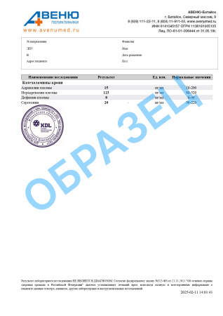 Катехоламины крови (адреналин, норадреналин, дофамин, серотонин)