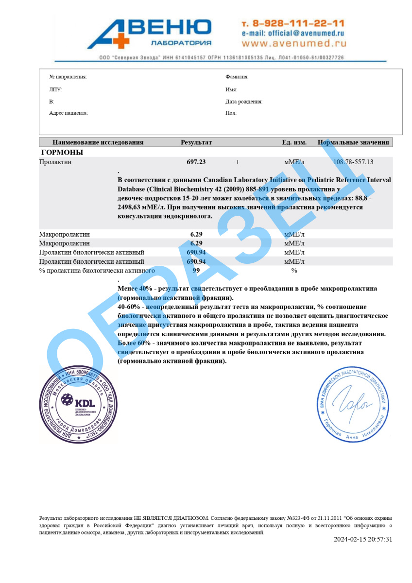 Макропролактин в Батайске (включает определение пролактина и биологически активного пролактина), количественно