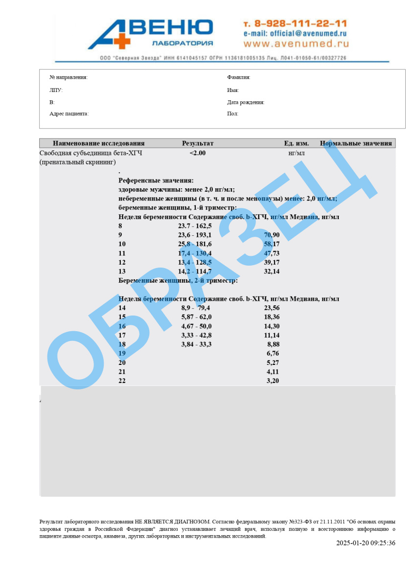 Свободная субъединица бета-ХГЧ (пренатальный скрининг), количественно