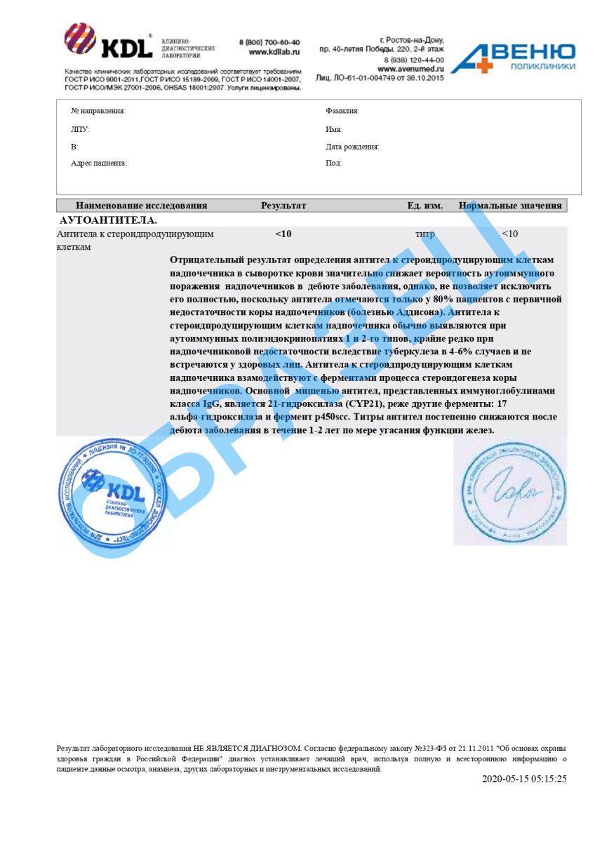 Антитела к стероид-продуцирующим клеткам надпочечника (АСПК), количественно