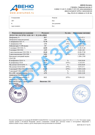 A12.06.001.010 Исследование CD3+/-HLADR+/- лимфоцитов