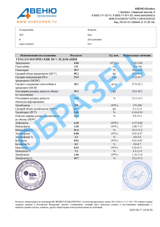 Разъяснение результатов анализов предоставляет важные сведения для доктора и не служит основанием для установления диагноза. Данные, полученные в ходе анализов, не должны применяться пациентами для самостоятельной диагностики или лечения. Окончательный диагноз определяется медицинским специалистом на основе комплексного анализа результатов данного исследования, а также истории болезни и данных из других диагностических процедур.