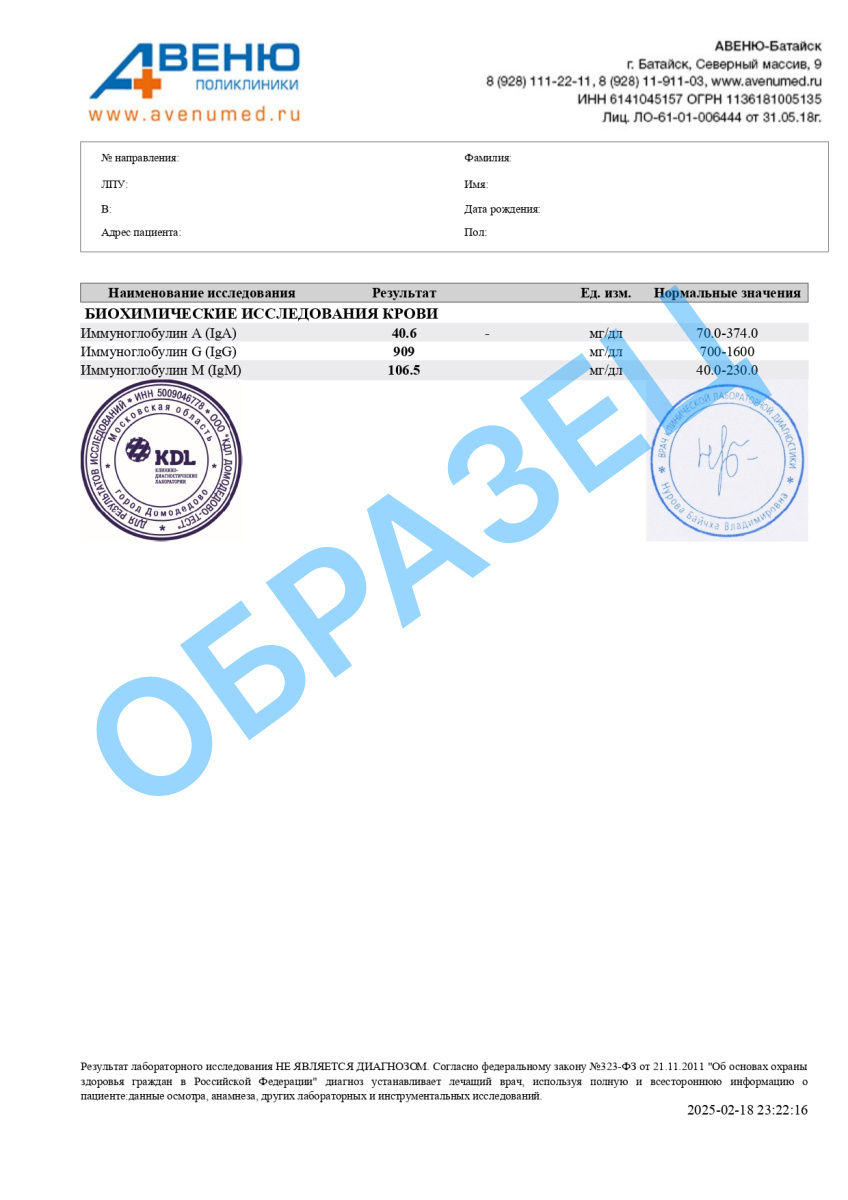 А09.05.054.003 Исследование уровня иммуноглобулина M в крови