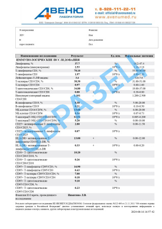 A12.06.001.010 Исследование CD3+/-HLADR+/- лимфоцитов