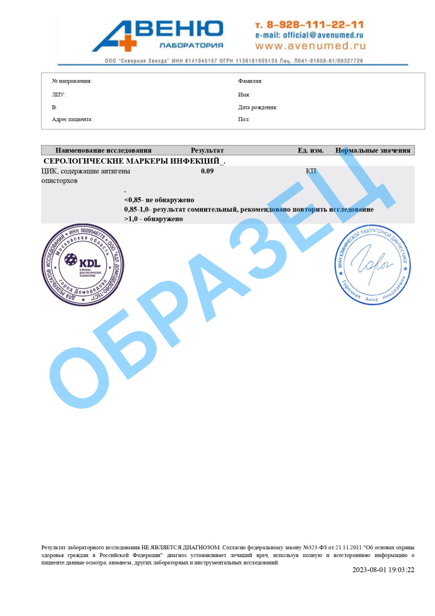 Разъяснение результатов анализов предоставляет важные сведения для доктора и не служит основанием для установления диагноза. Данные, полученные в ходе анализов, не должны применяться пациентами для самостоятельной диагностики или лечения. Окончательный диагноз определяется медицинским специалистом на основе комплексного анализа результатов данного исследования, а также истории болезни и данных из других диагностических процедур.