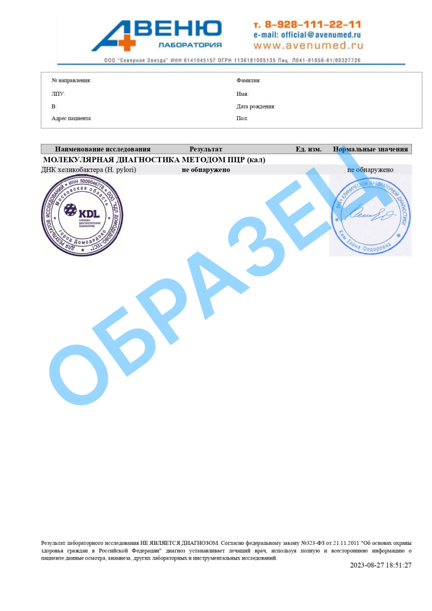 Интерпретация результата анализа на ДНК Хеликобактер пилори в кале не может быть выражена в числах, так как исследование является качественным. Существует 3 варианта: