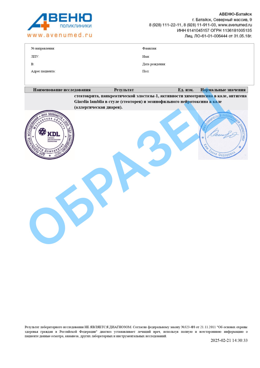 Разъяснение результатов анализов предоставляет важные сведения для доктора и не служит основанием для установления диагноза. Данные, полученные в ходе анализов, не должны применяться пациентами для самостоятельной диагностики или лечения. Окончательный диагноз определяется медицинским специалистом на основе комплексного анализа результатов данного исследования, а также истории болезни и данных из других диагностических процедур