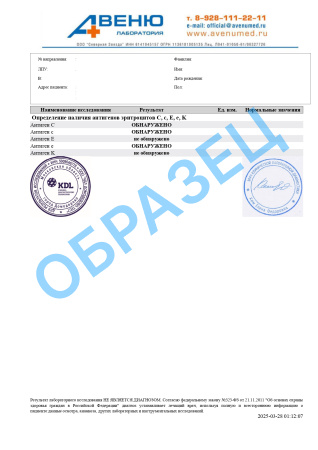 Временно результат исследования выдается без антигена k (малое)