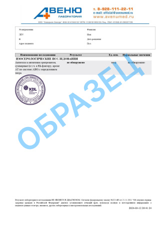 A12.06.027 Определение содержания антител к антигенам эритроцитов в сыворотке крови
