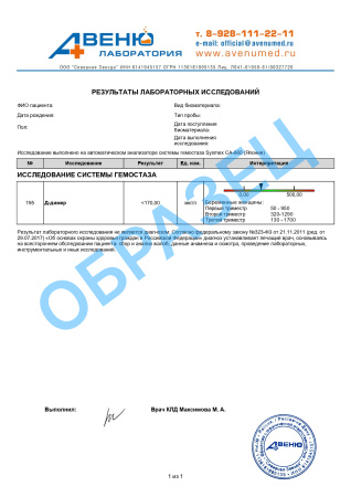 A09.05.051.001 Определение концентрации Д-димера в крови