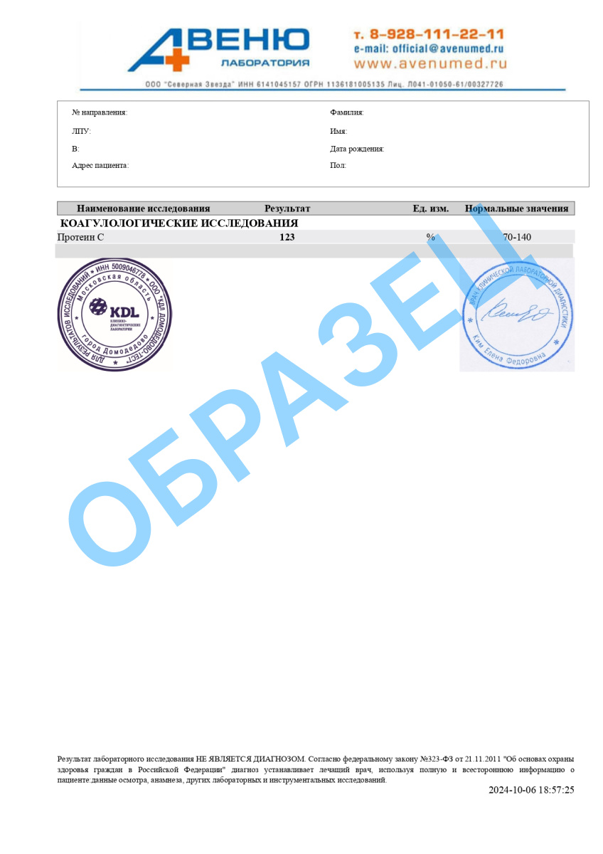 В поликлиниках АВЕНЮ вы можете сдать венозную кровь для проведения анализа на протеин С по приятной цене. Результат будет готов через 4 дня.