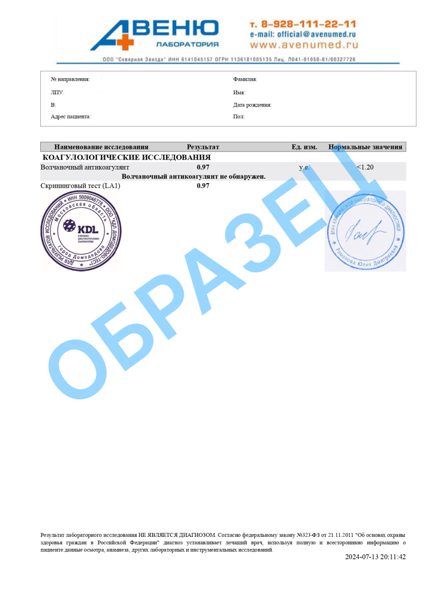 Интерпретация результата анализа на волчаночный антикоагулянт