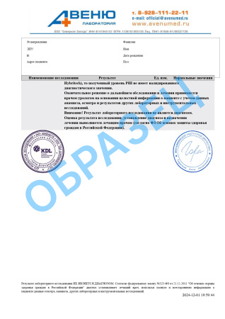 Разъяснение результатов анализов предоставляет важные сведения для доктора и не служит основанием для установления диагноза. Данные, полученные в ходе анализов, не должны применяться пациентами для самостоятельной диагностики или лечения. Окончательный диагноз определяется медицинским специалистом на основе комплексного анализа результатов данного исследования, а также истории болезни и данных из других диагностических процедур.