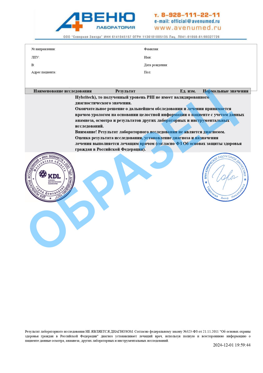 Индекс здоровья простаты, PHI (Простатоспецифический антиген (ПСА) общий, Простатоспецифический антиген (ПСА) свободный, изоформа -2про ПСА, % Простатоспецифического антигена (ПСА) свободного)