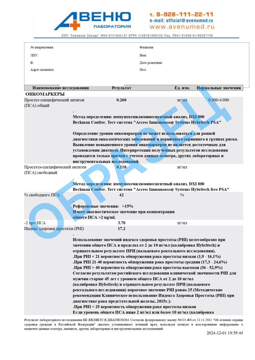Исследование уровня простатспецифического антигена свободного в крови A09.05.130.001