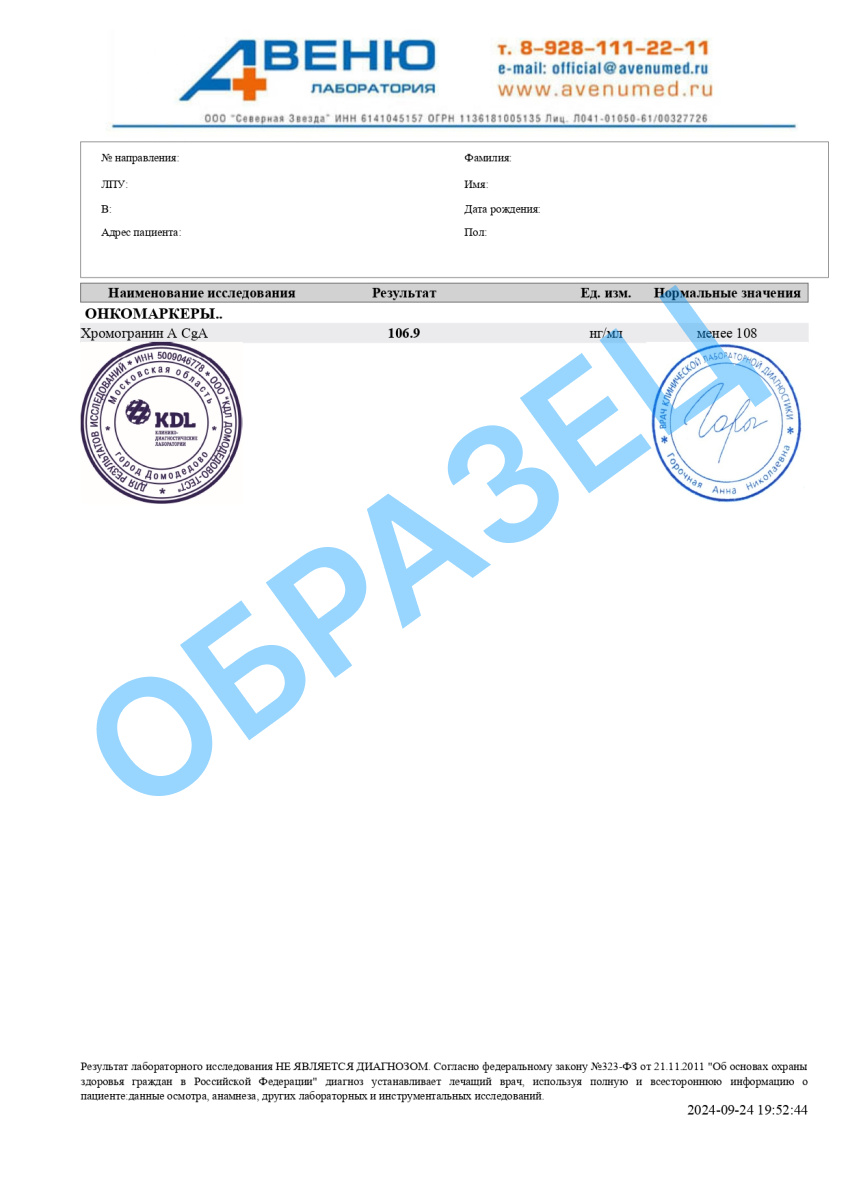 Разъяснение результатов анализов предоставляет важные сведения для доктора и не служит основанием для установления диагноза. Данные, полученные в ходе анализов, не должны применяться пациентами для самостоятельной диагностики или лечения. Окончательный диагноз определяется медицинским специалистом на основе комплексного анализа результатов данного исследования, а также истории болезни и данных из других диагностических процедур
