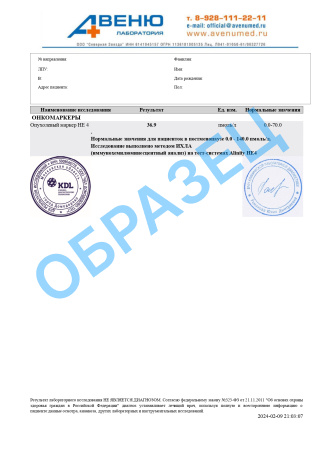 Опухолевый маркер HE 4, количественно