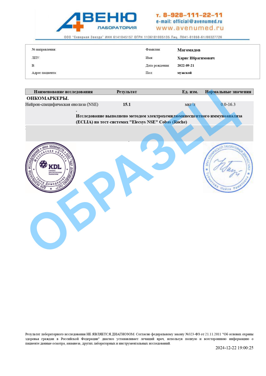 A09.05.246 Исследование уровня нейронспецифической енолазы в крови