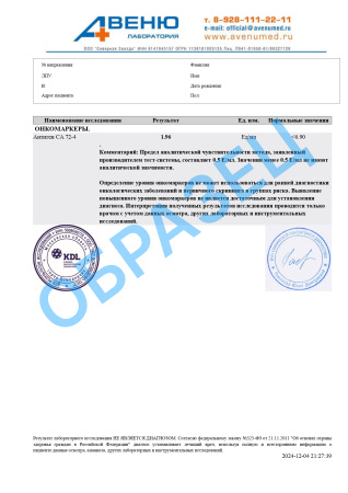 | СА 72-4 | < 6.90 | Ед/мл |