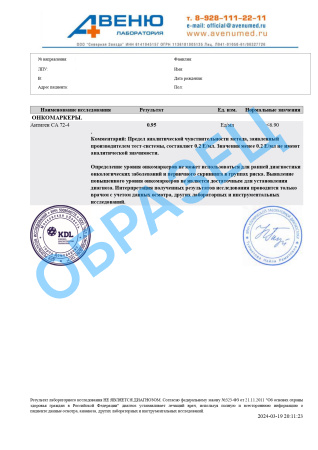 Разъяснение результатов анализов предоставляет важные сведения для доктора и не служит основанием для установления диагноза. Данные, полученные в ходе анализов, не должны применяться пациентами для самостоятельной диагностики или лечения. Окончательный диагноз определяется медицинским специалистом на основе комплексного анализа результатов данного исследования, а также истории болезни и данных из других диагностических процедур.
