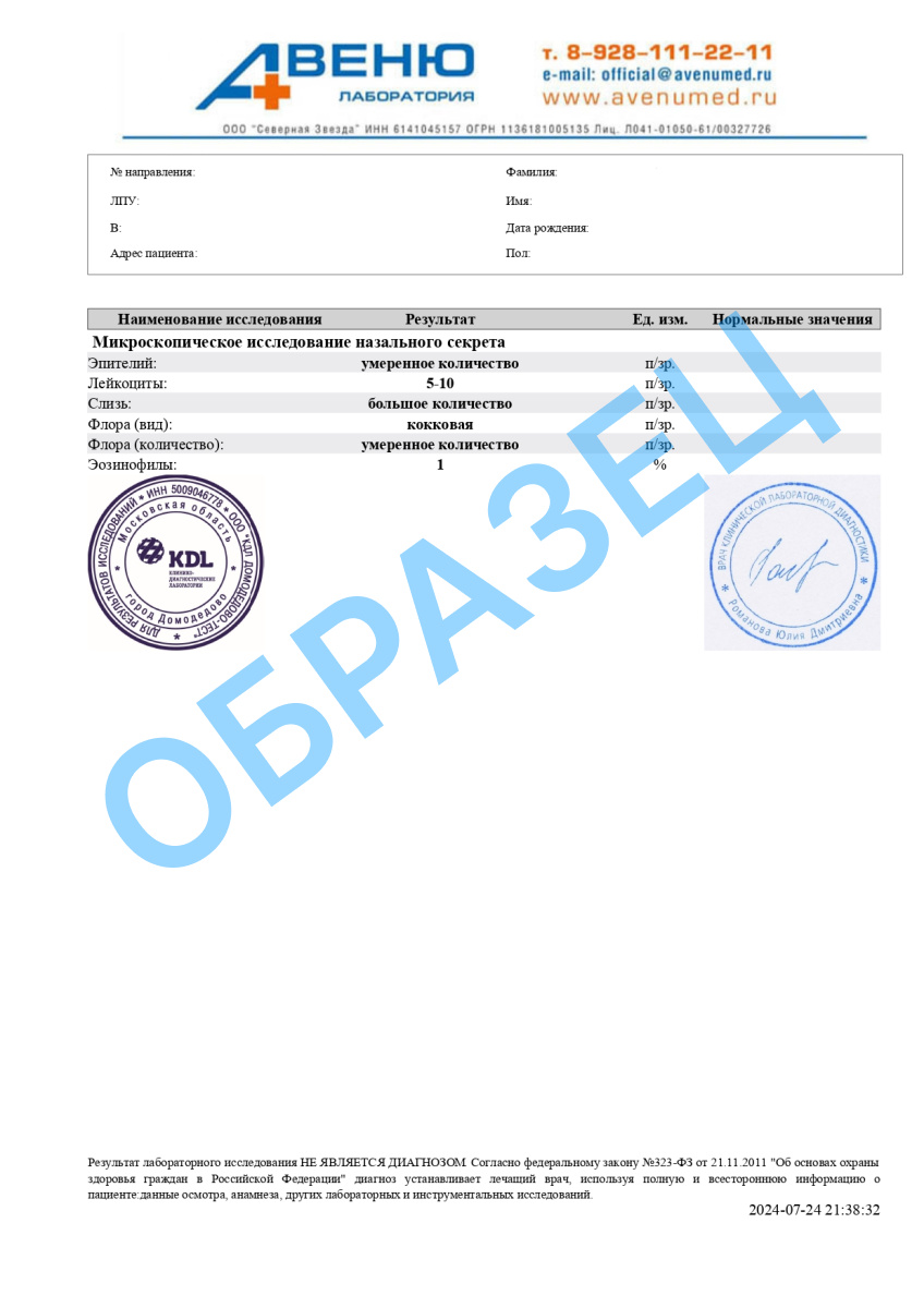 Микроскопическое исследование назального секрета (на эозинофилы)