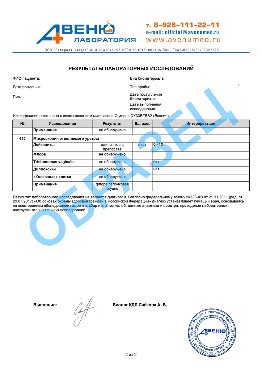A12.28.015 Микроскопическое исследование отделяемого из уретры