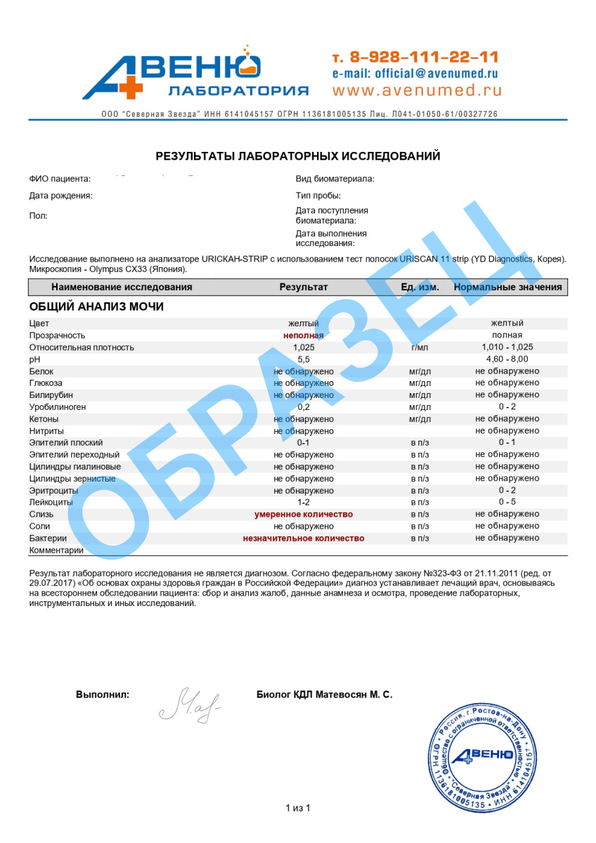 Общий анализ мочи в Батайске (лабораторный)