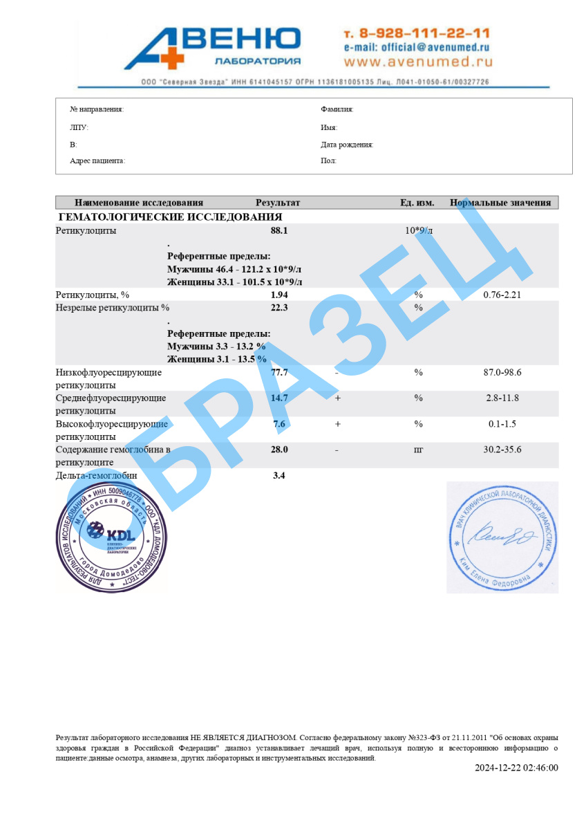 Исследование уровня ретикулоцитов в крови A12.05.123