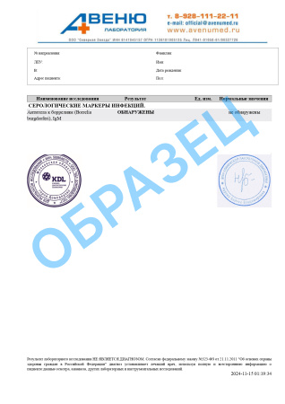 A26.06.011.001 Определение антител класса M (IgM) к возбудителям иксодовых клещевых боррелиозов группы Borrelia burgdorferi sensu lato в крови