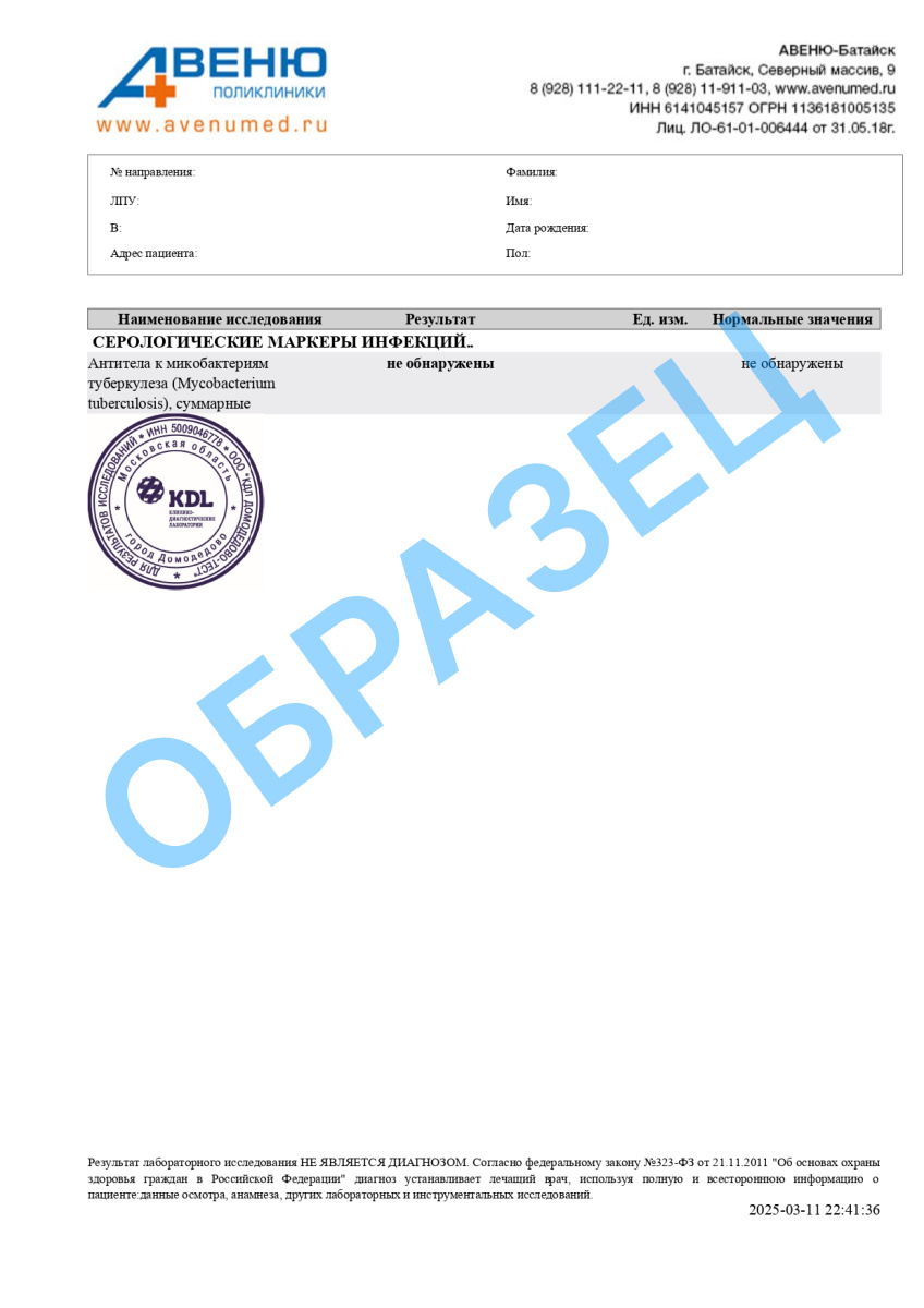 АТ к микобактериям туберкулеза IgM+IgG (качественно) в Батайске
