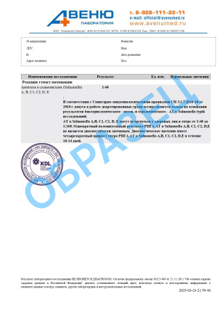 АТ к сальмонеллам (Salmonella) A,B,C1,C2,D,E (полуколичественно) в Батайске