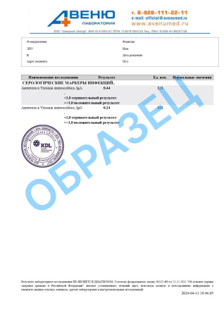 A26.06.094 Определение антител классов M, G (IgM, IgG) к иерсинии псевдотуберкулеза (Yersinia pseudotuberculosis) в крови