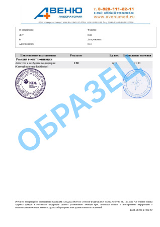 Антитела к возбудителю дифтерии (Corynebacterium diphteriae), полуколичественно